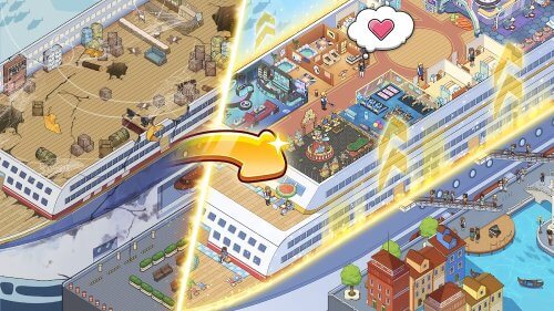 The game starts with an old, worn-out cruise ship that requires major renovation. Your primary objective is to transform it into a world-class luxury cruise liner. Players are free to add, remove, or redesign different sections of the ship, including cabins and utility zones. Making the ship more appealing involves building high-quality entertainment spaces and decorative areas that enhance passenger satisfaction. While the game suggests designing based on tourist preferences, players can freely follow their own creative vision. As the ship becomes more attractive, more tourists will naturally arrive, increasing profits and reputation.
